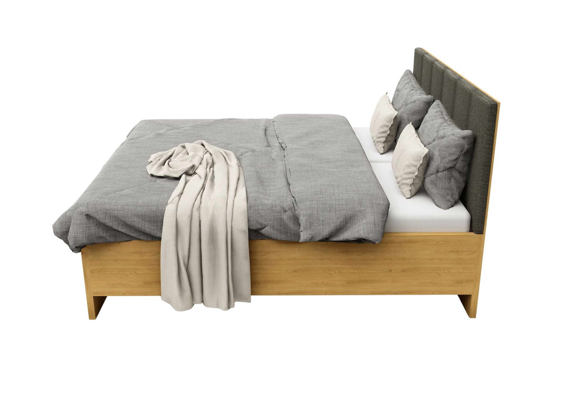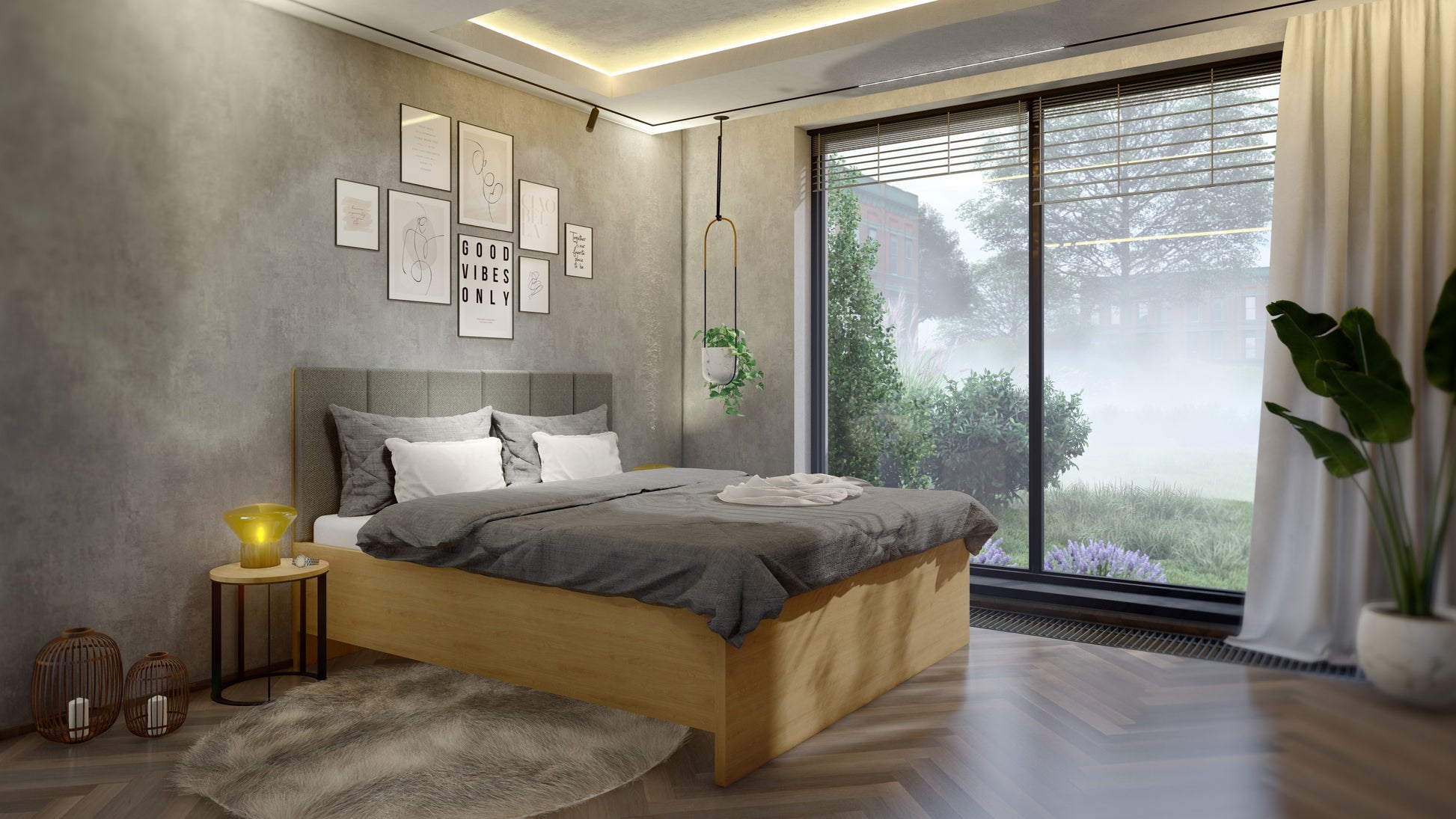 Manželská postel Solis v sobě spojuje nadčasový vzhled a praktické provedení. Její čisté linie a dominantní čalouněné čelo okamžitě zaujmou a dodají ložnici moderní a útulný ráz. Čelo je navrženo tak, aby poskytovalo pohodlnou oporu při večerním čtení i ranním odpočinku.