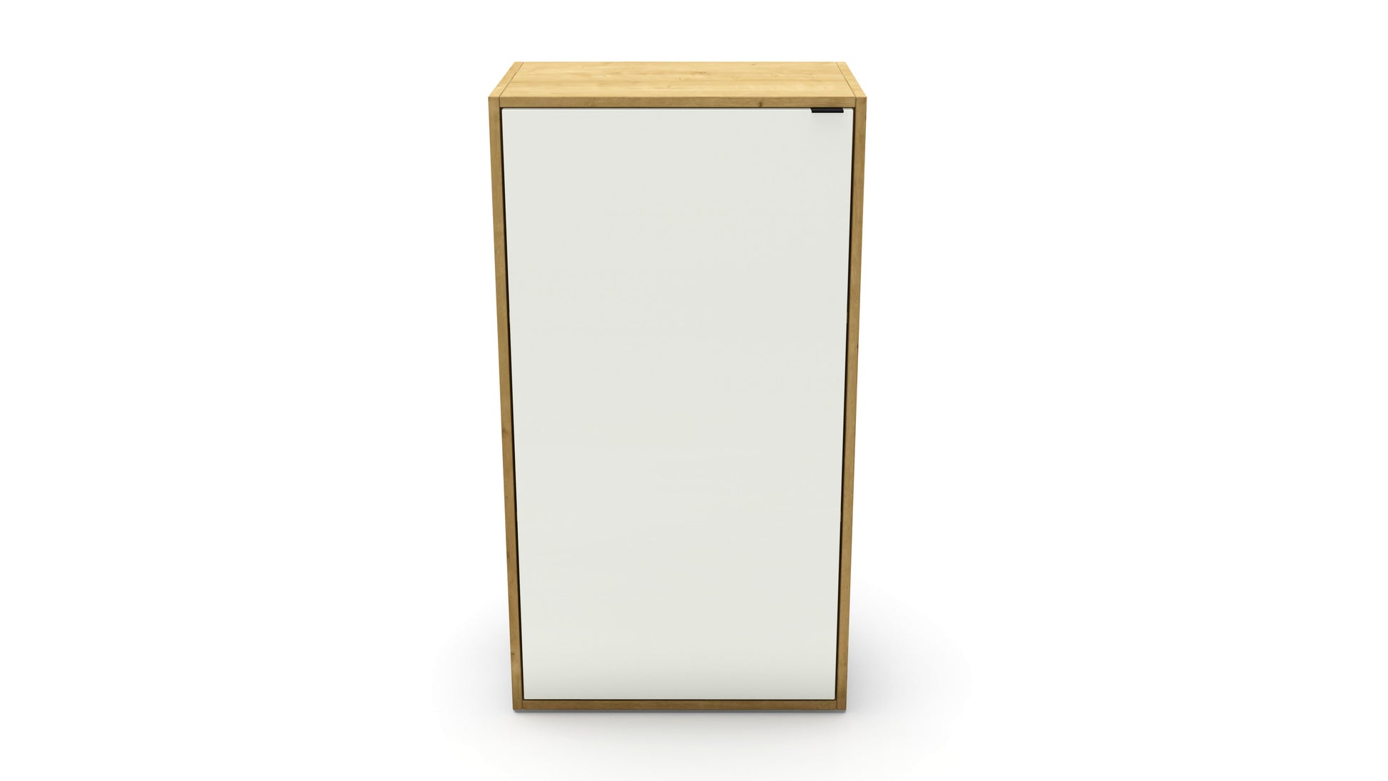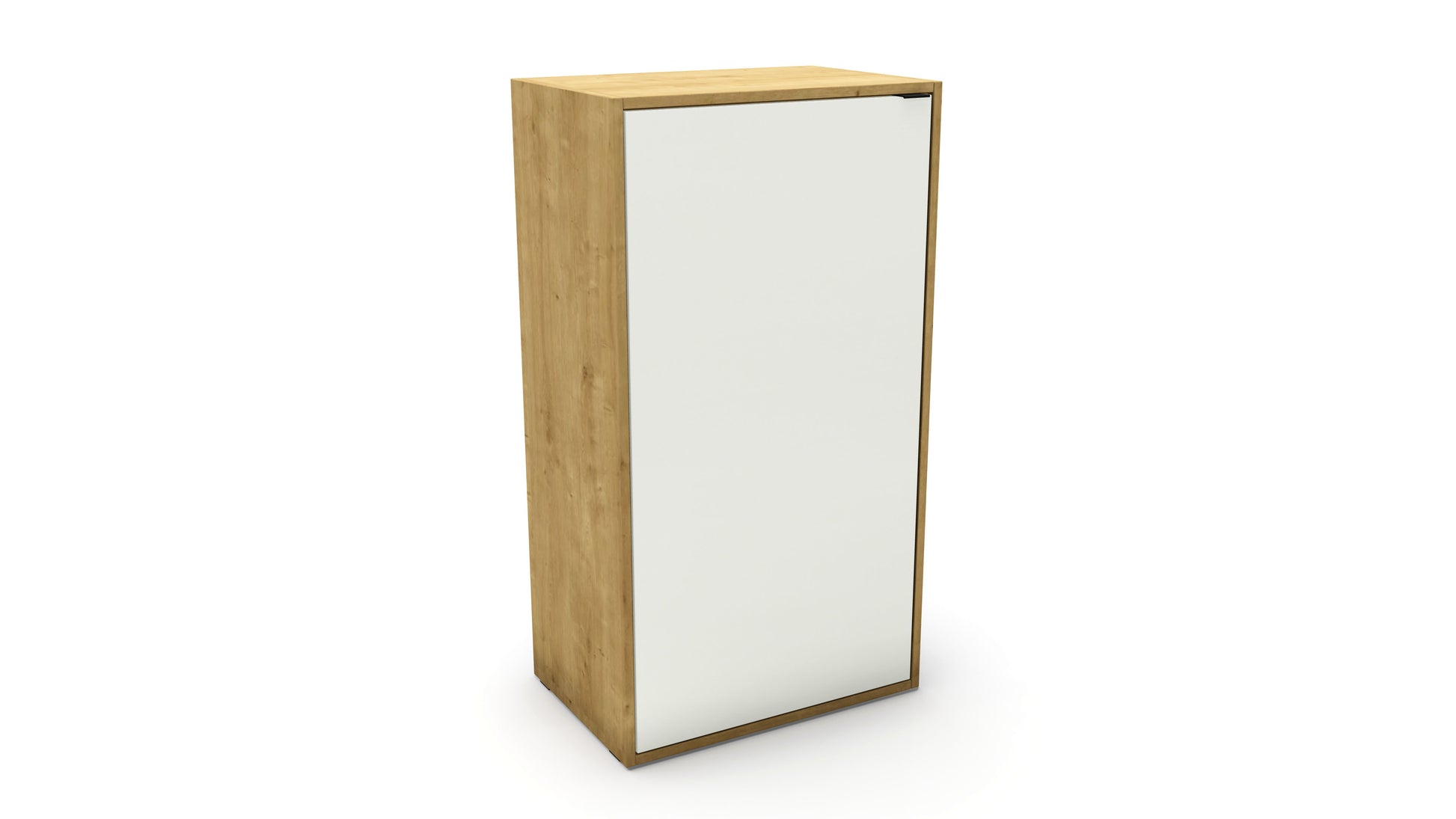 Skříňka z kolekce Typo vybavená dvěma výškově stavitelnými policemi (pro každou polici je k dispozici 5 volitelných pozic).