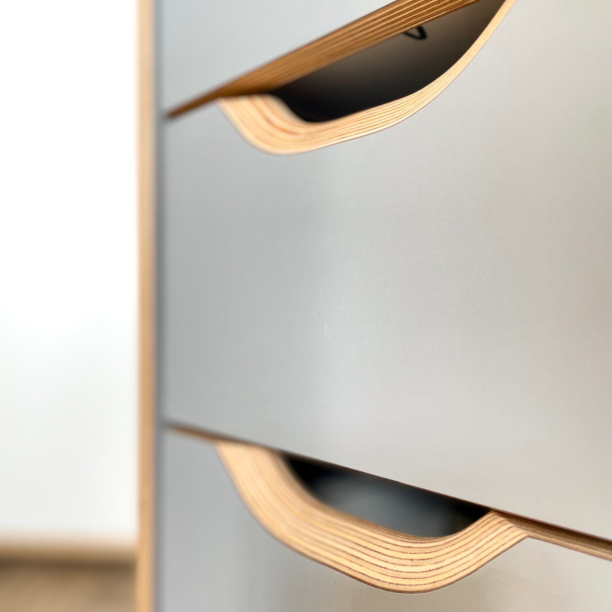 Kontejner Plywave v úzké variantě je navržený pro ty, kdo hledají víc než jen praktické úložné řešení do kanceláře. Spojuje minimalistický design s precizním řemeslným zpracováním a nabízí nadčasovou estetiku, která vynikne jak v moderním interiéru, tak v reprezentativní pracovní zóně.