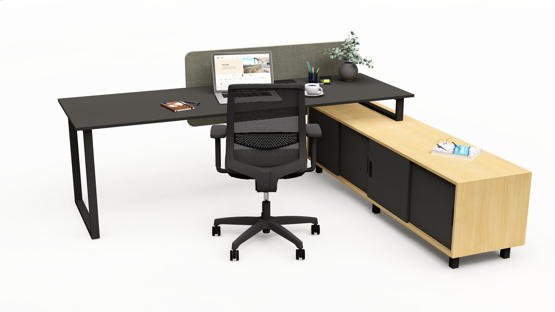 Manažerský stůl Typo je prostorný rohový pracovní stůl navržený pro každodenní kancelářský provoz i domácí pracovnu. Nabízí velkorysou pracovní plochu, praktické úložné řešení a tvarování, které podporuje pohodlné a ergonomické sezení během celého dne.