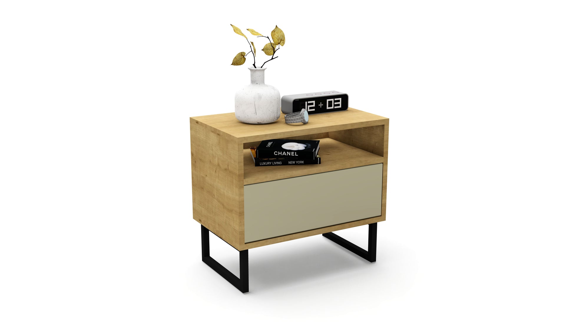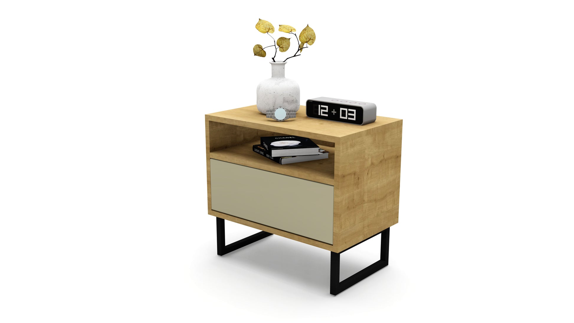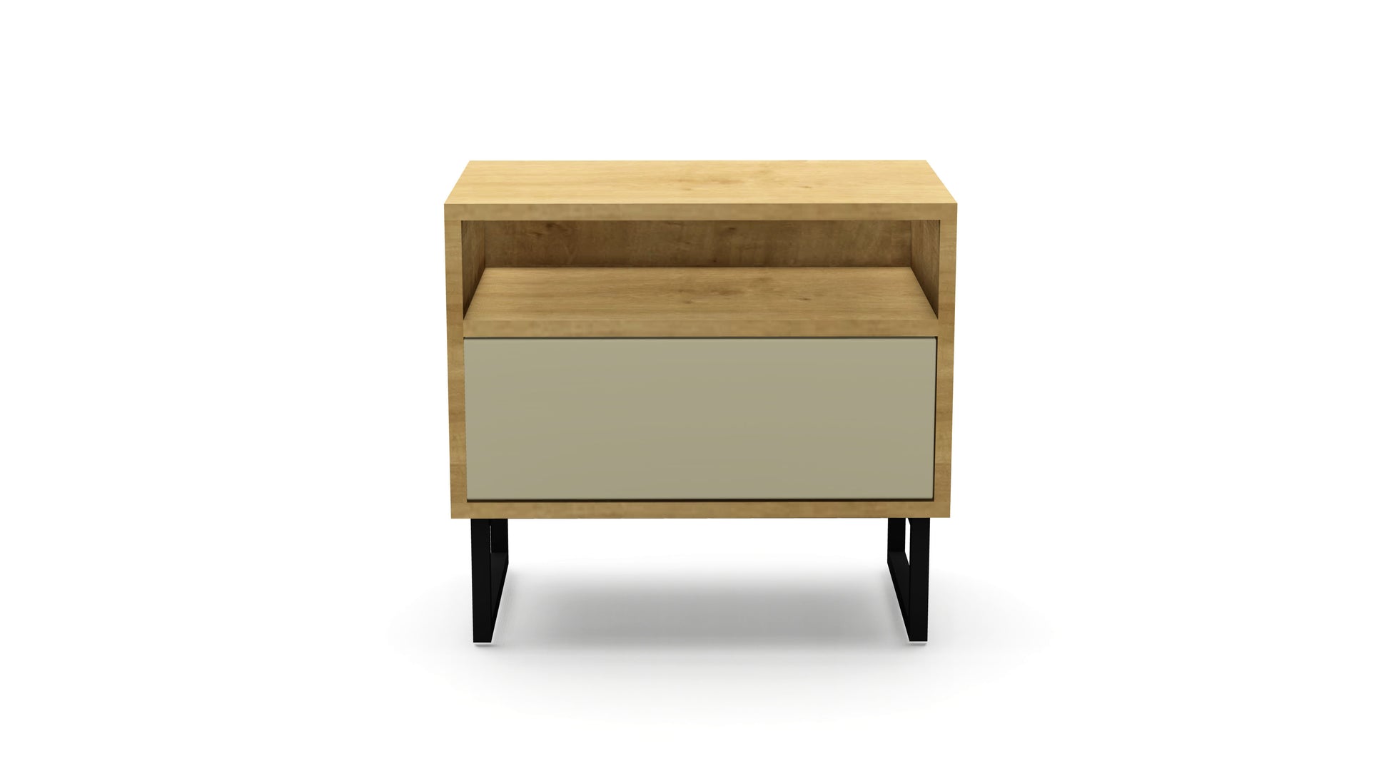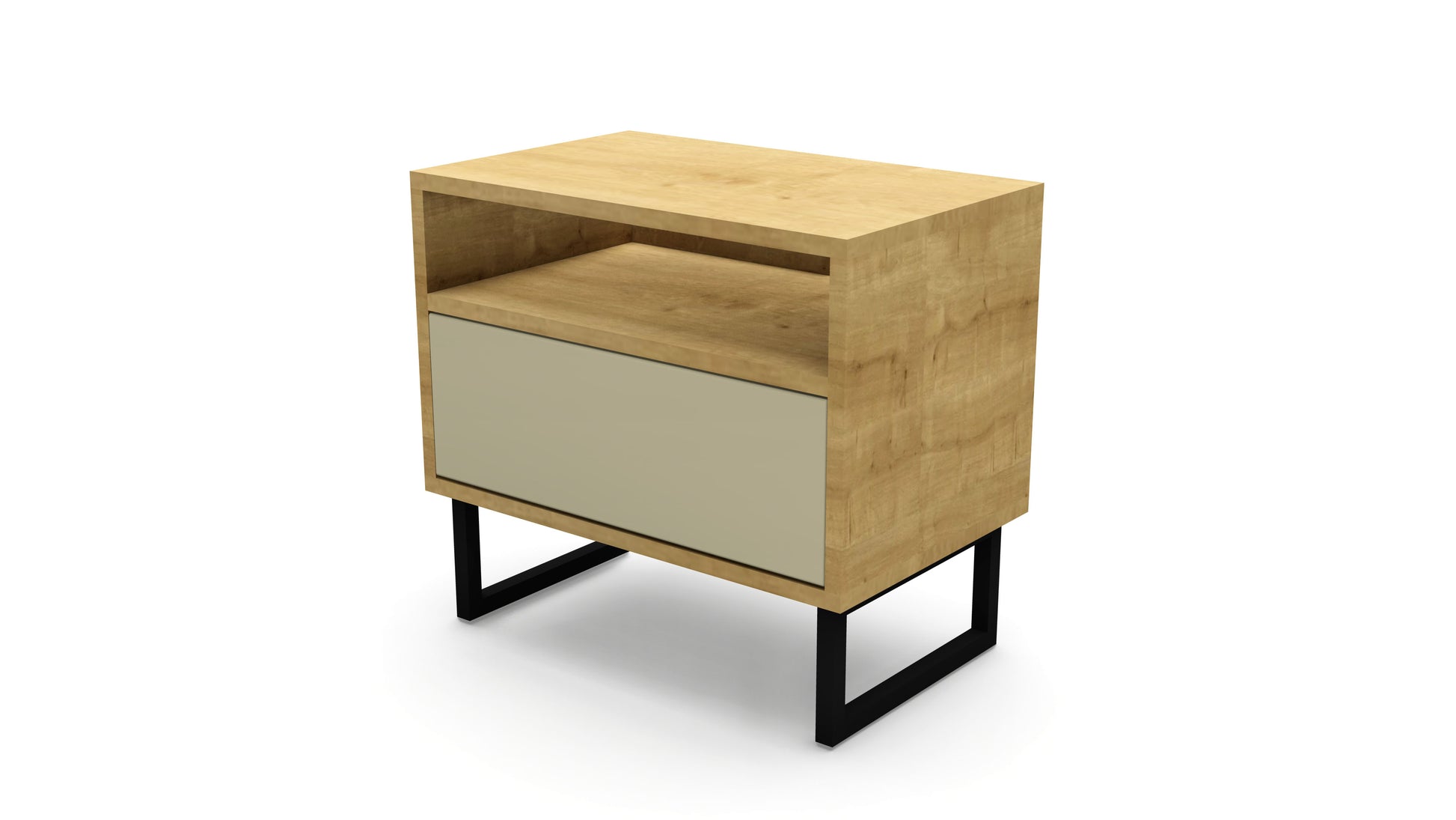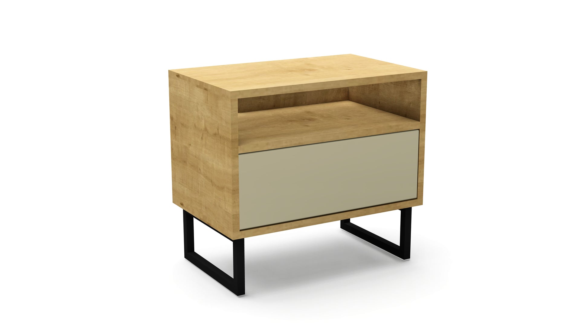 Noční stolek Mezo II. je moderní a nadčasový doplněk ložnice, který spojuje čistý design s praktičností. Oproti variantě Mezo I. je postaven na kovových nožkách, které mu dodávají odlehčený vzhled a zároveň usnadňují úklid pod nábytkem.