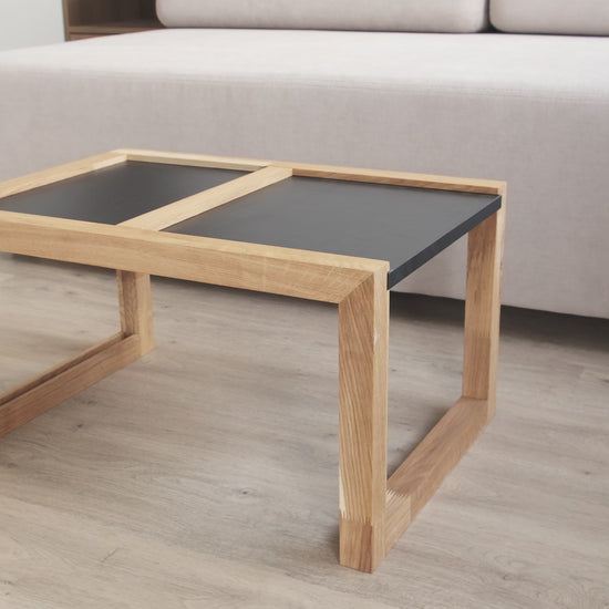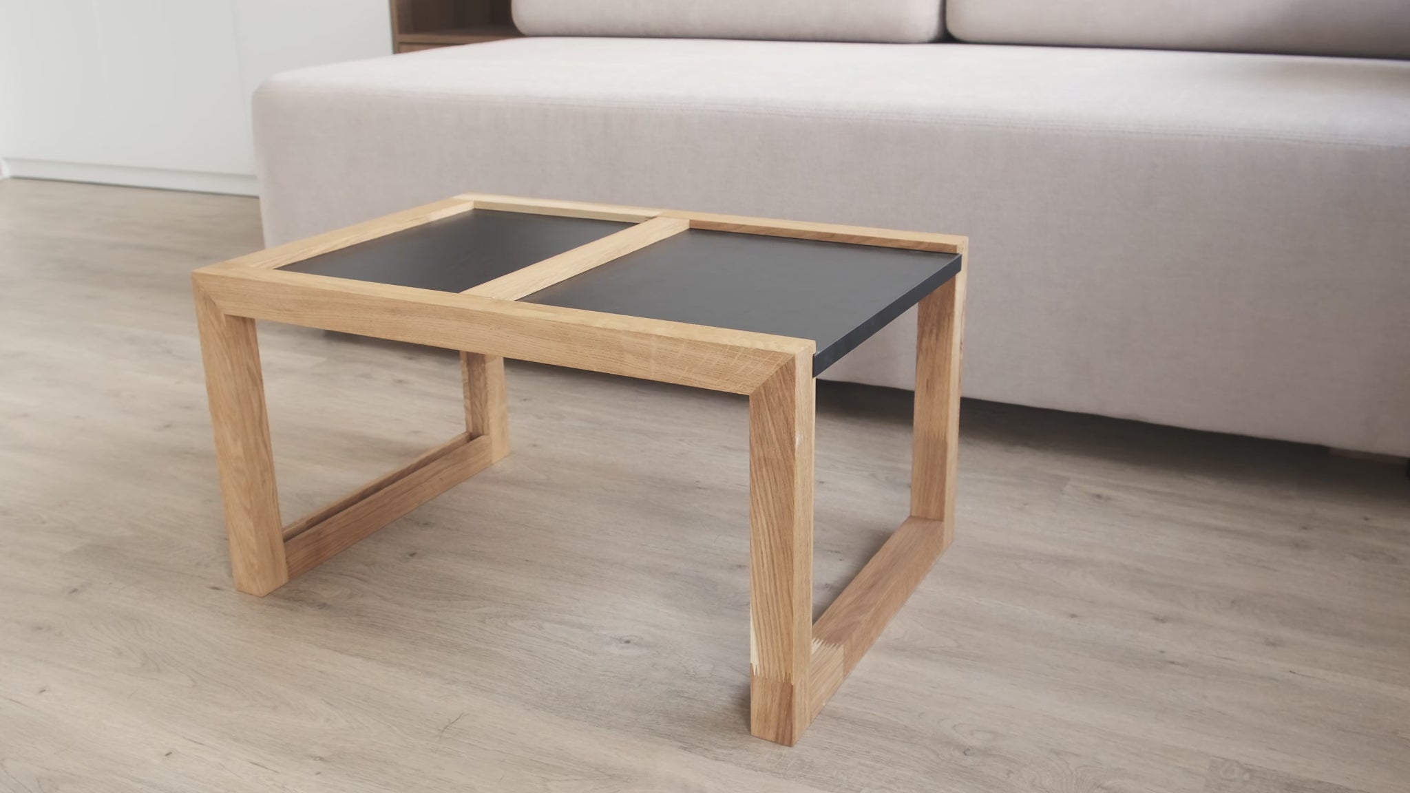 Kombinace laminované desky a dubového rámu zajišťuje odolnost i vizuální nadčasovost. Tablies je univerzální solitér, který přirozeně zapadne do jakéhokoli interiéru – od obýváku po malou pracovnu.