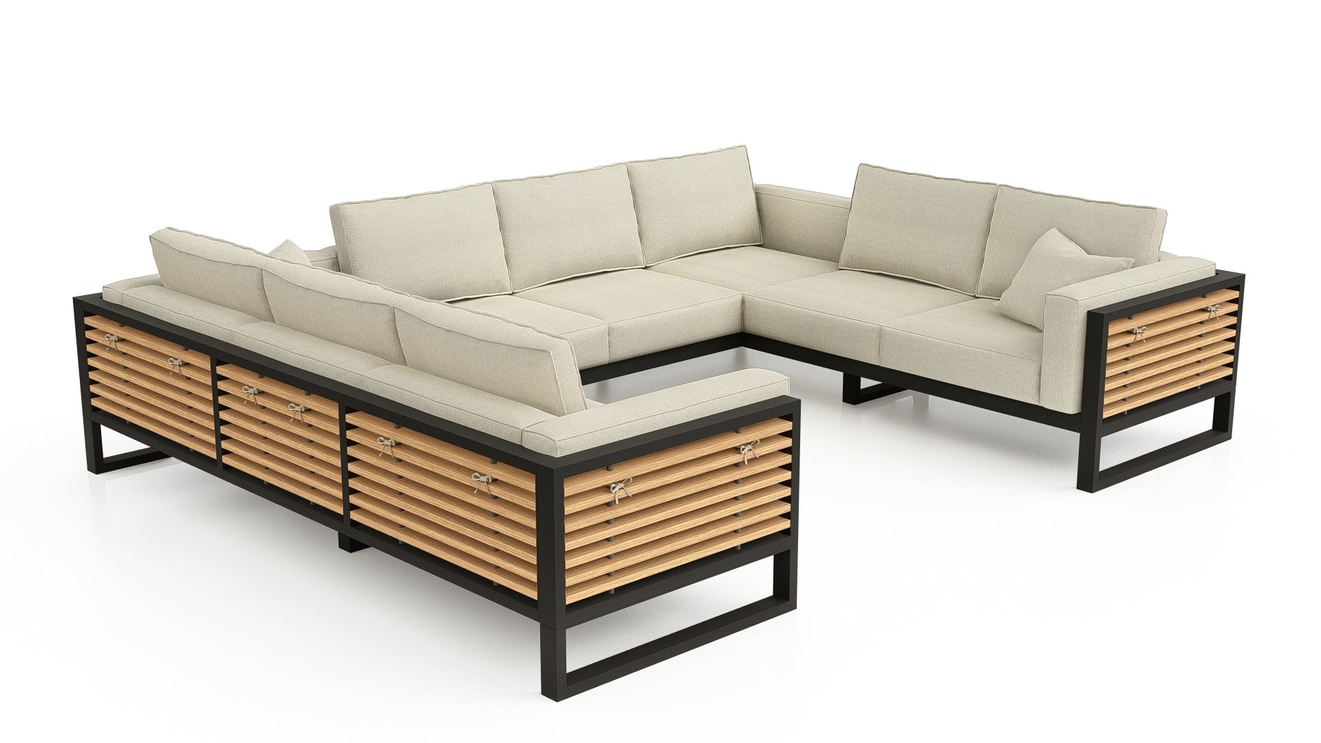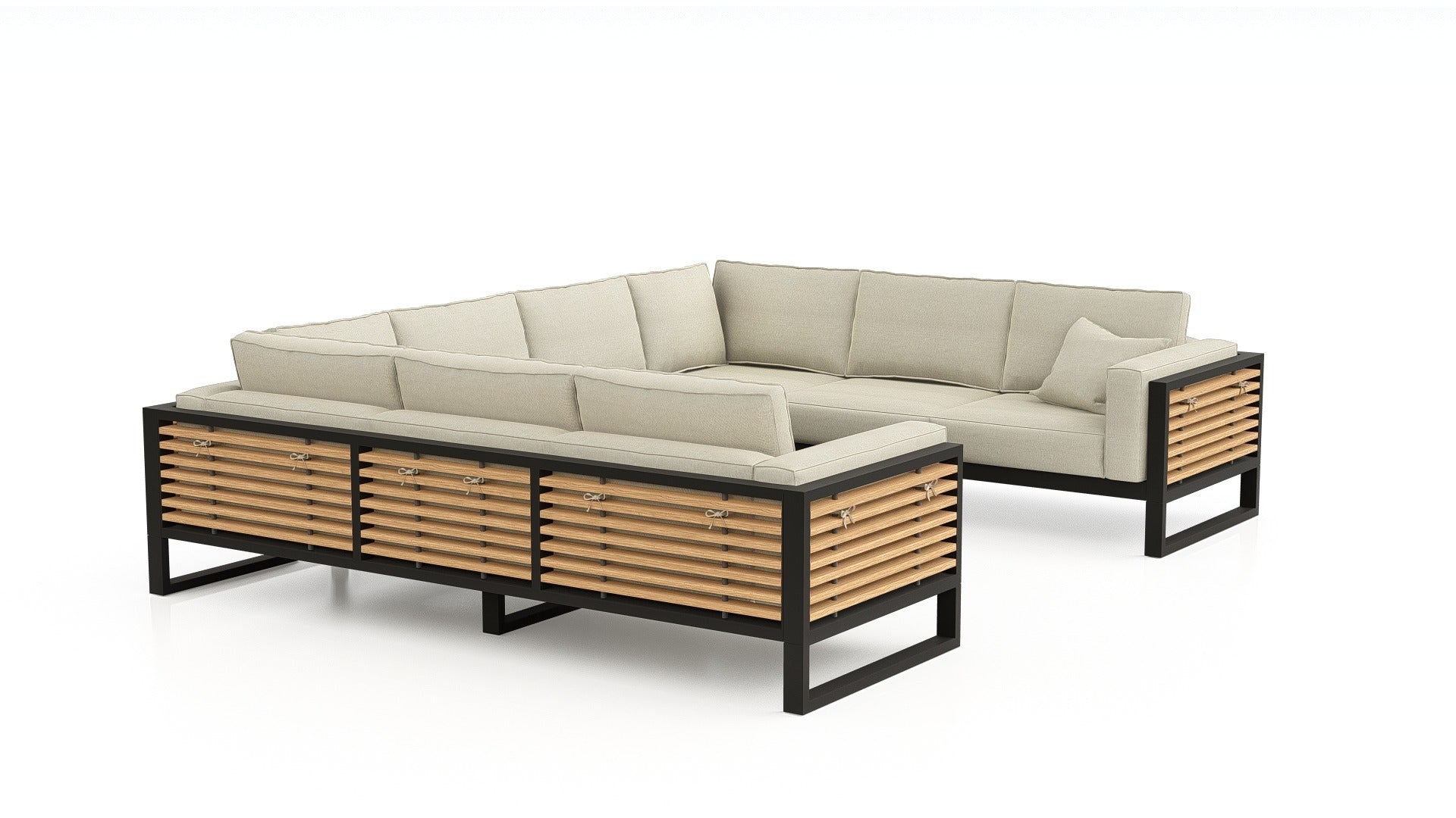 - Prostorná sestava ve tvaru U pro venkovní relaxaci