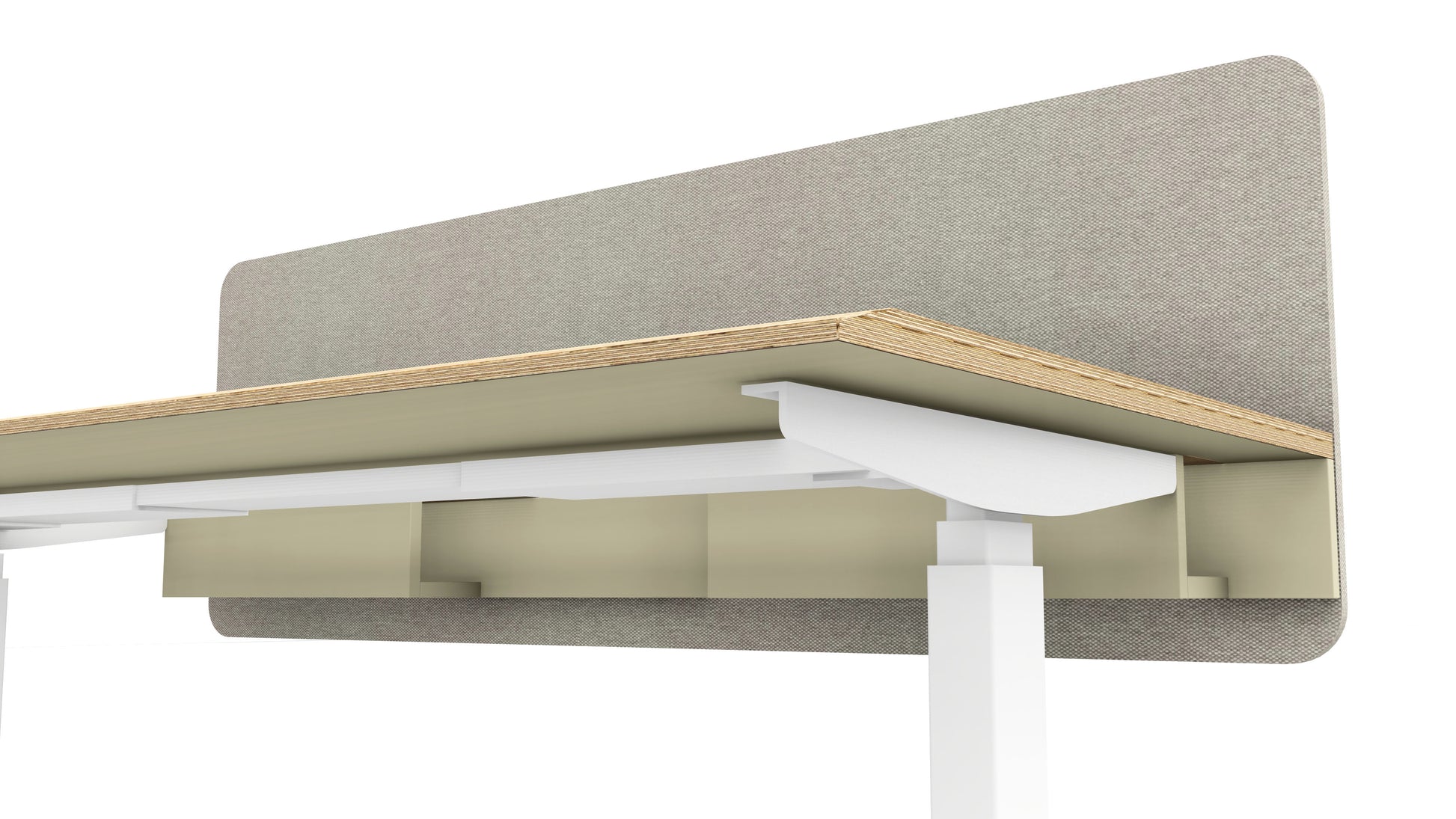 Stůl je vybaven praktickým kabelovým žlabem a průchodkami, které udrží vaši pracovní plochu přehlednou a bez rušivého nepořádku. Podle potřeby lze stůl doplnit o kolečka nebo korkový paraván, který nabízí větší soukromí i funkci nástěnky.