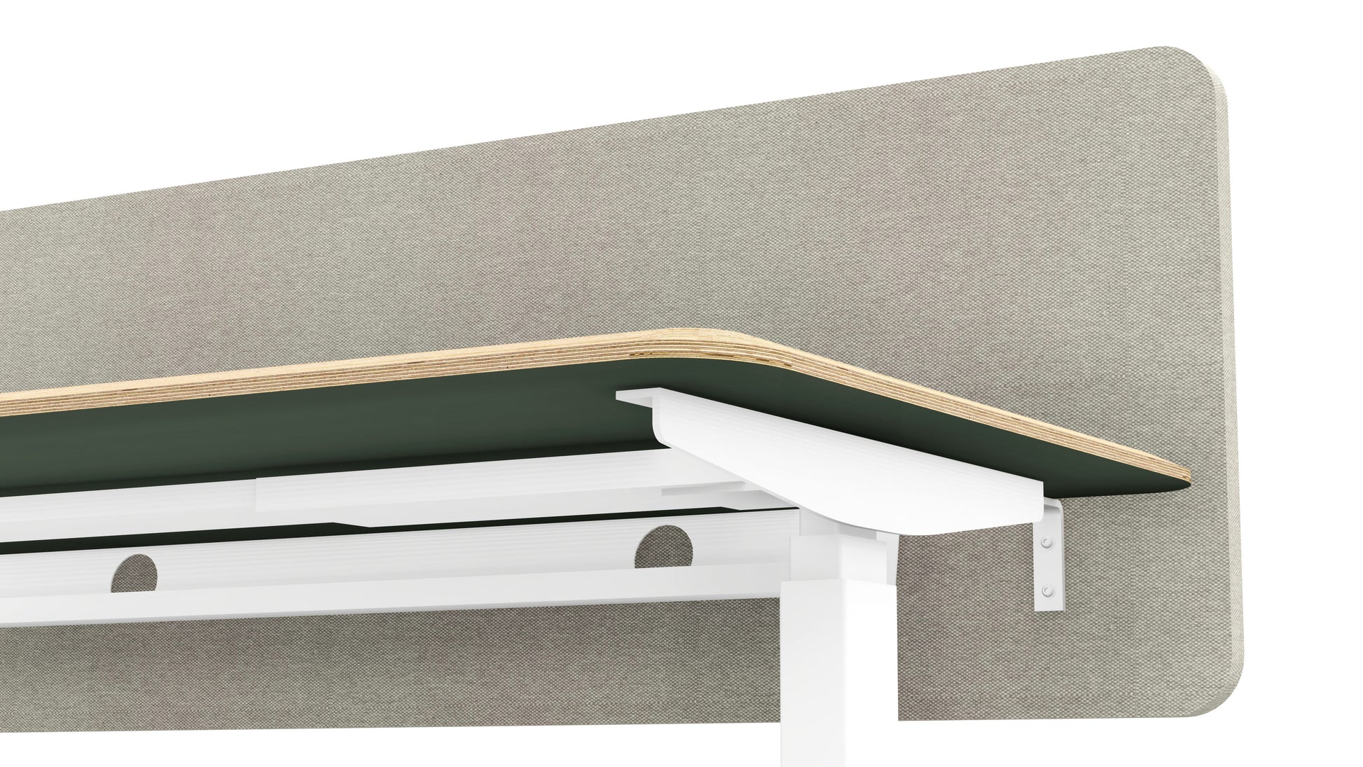 Pod pracovní deskou se nachází praktický kovový kabelový žlab, který pomáhá udržet pořádek a ukrýt veškerou kabeláž. Na přání lze stůl doplnit o kolečka nebo čalouněný paraván, který slouží zároveň jako nástěnka a vizuální clona v otevřeném prostoru.
