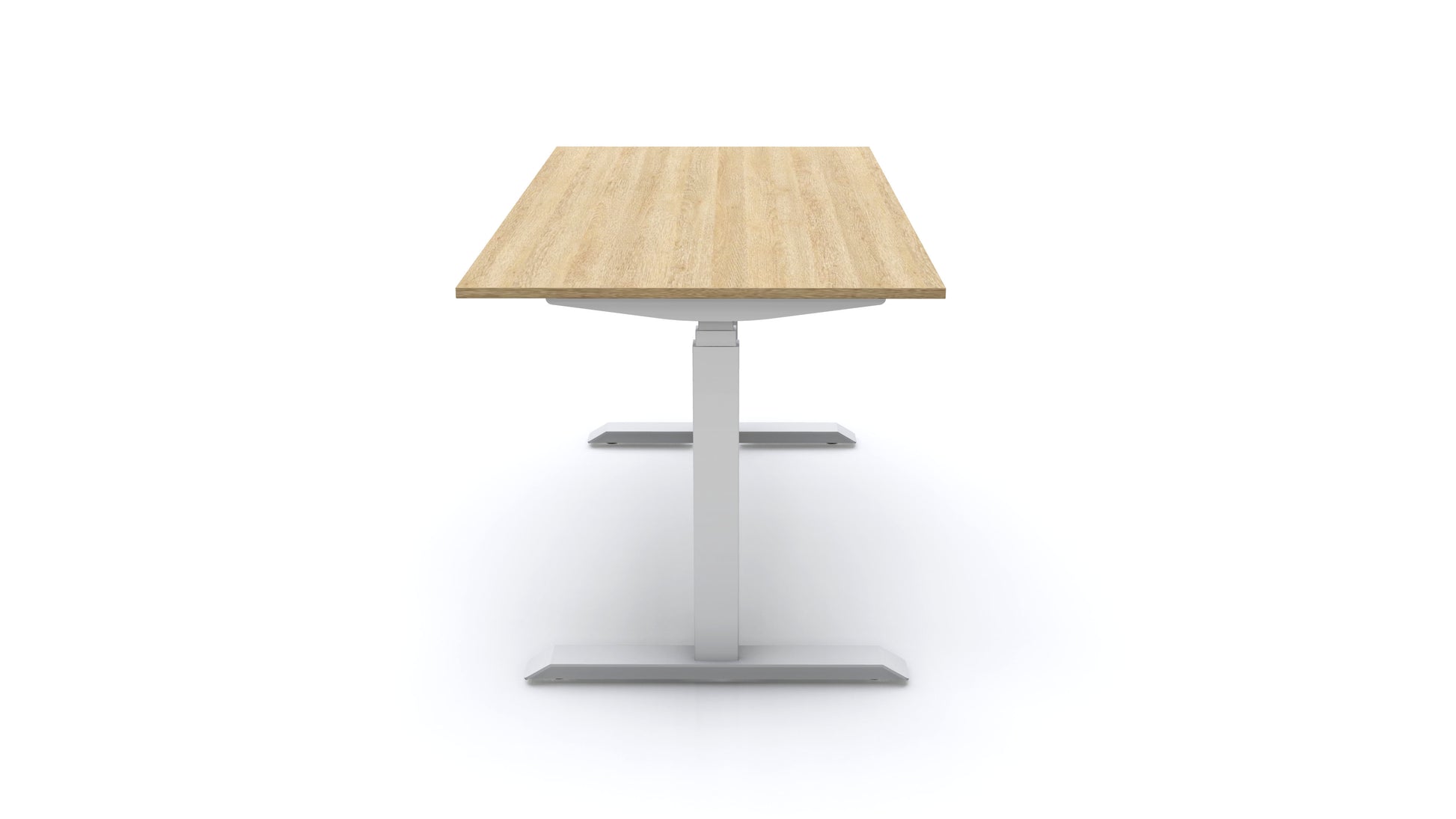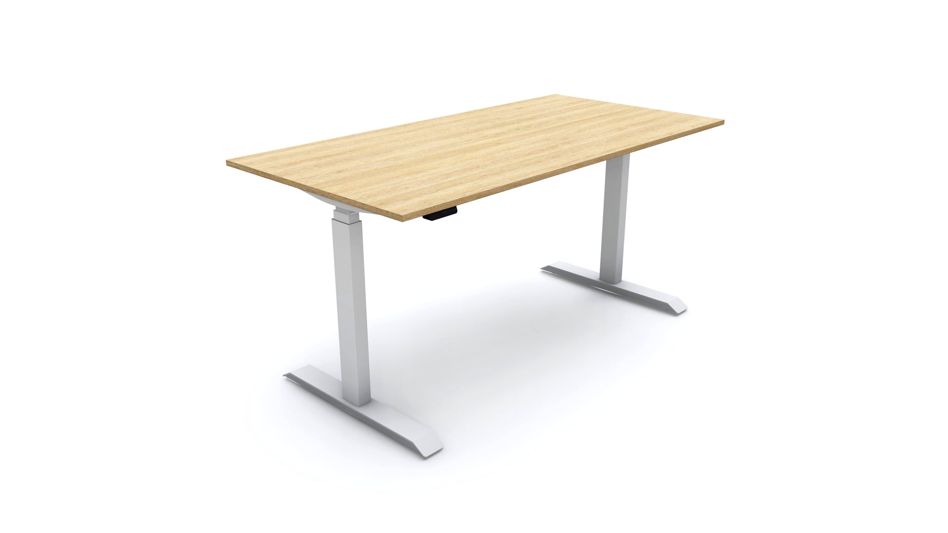 Stolová deska je vyrobena z odolné laminované dřevotřísky s ABS hranou, která se snadno udržuje a obstojí i při každodenním provozu. Jednoduchá a pevná konstrukce je doplněna kvalitní výškově nastavitelnou podnoží s paměťovým ovladačem a USB portem. Pracovní výšku si tak přizpůsobíte jediným stiskem.